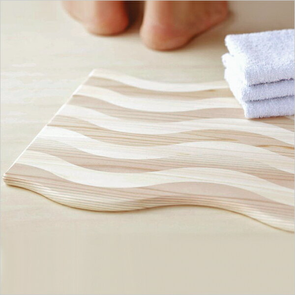木目と波型の特徴的な意匠が美しいバスマットは、飾らない素朴さと品の良さを感じさせてくれます。