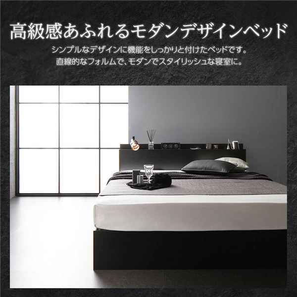■商品内容【高級モダンの象徴/High Quality Modern】 1:Design/高級感あふれるモダンデザイン 2:Head board/コンセント付ヘッドボード 3:Storage/2杯の引き出し収納 4:Variation/選べる3サイズ×2カラー【高級感あふれるモダンデザインベッド】 シンプルなデザインに機能をしっかりと付けたベッドです。